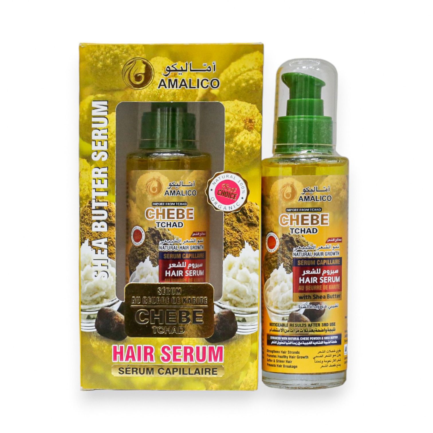 Transform your hair care routine with the ancient secrets of Chad. Amalico Chebe Tchad Hair Serum is a potent blend of authentic Chebe powder and nourishing Shea Butter, specifically formulated to strengthen hair from root to tip.